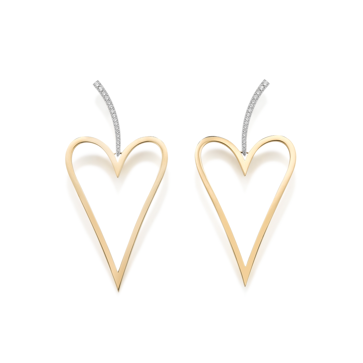 Fruits of Love Heart earrings set with diamonds, 0.43ct in 14ct yellow and white gold.