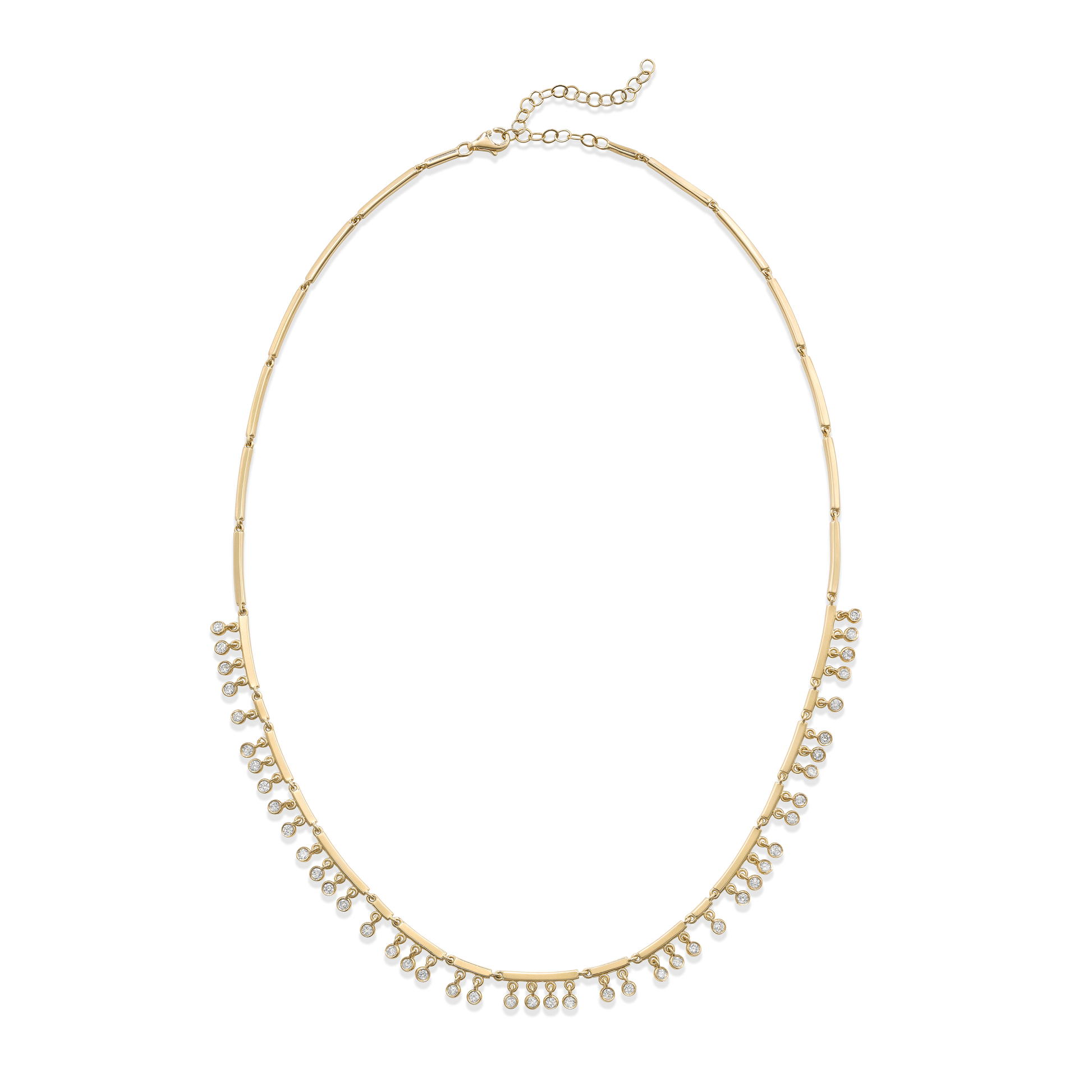 A celestial statement in 14ct yellow gold, the Jupe Necklace shimmers with diamonds that catch the light from every angle. Designed to layer or stand alone, this modern classic brings effortless brilliance to every look - day or night.