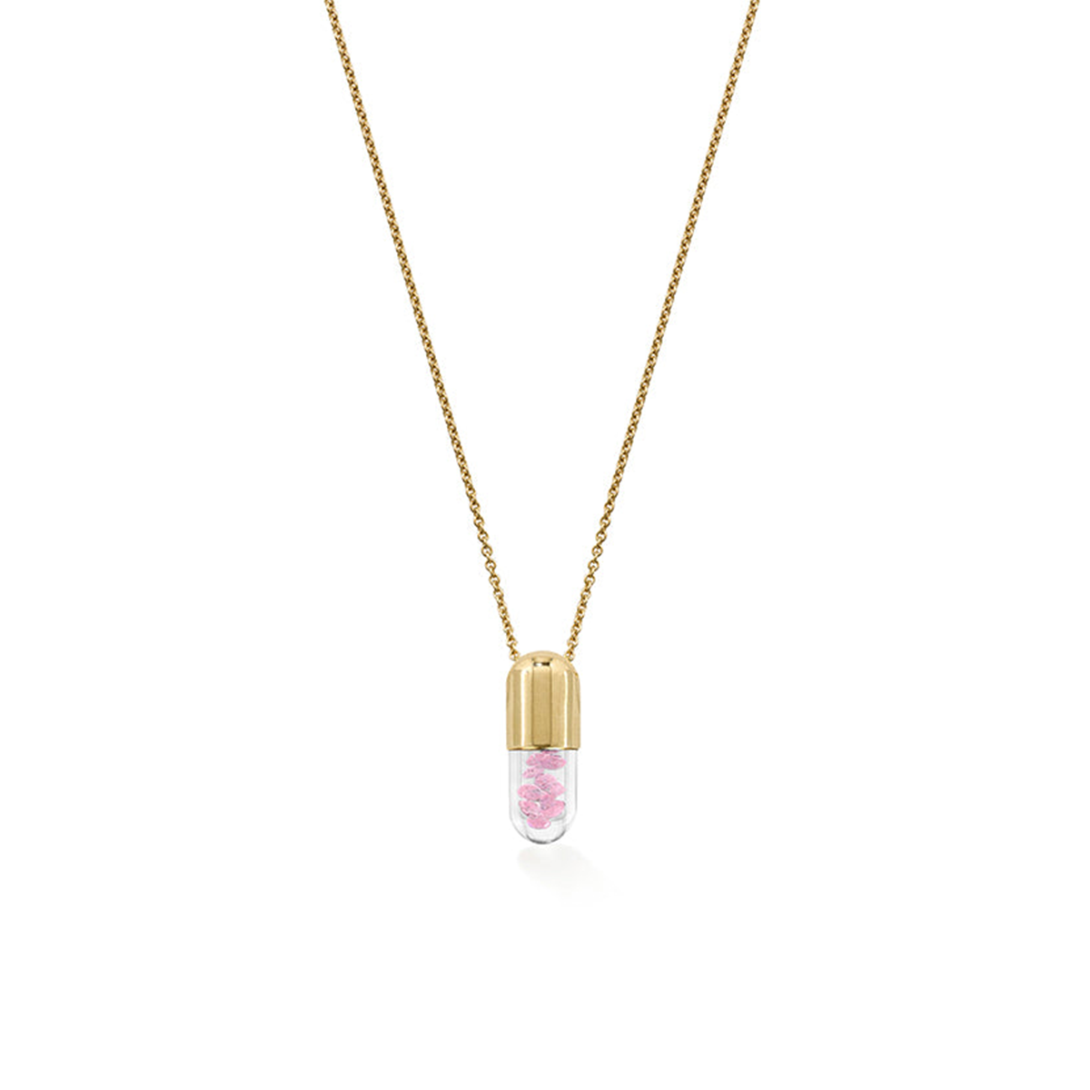Nourish your accessory game with our mini pink pastel 'Elixir of Youth' pendant.