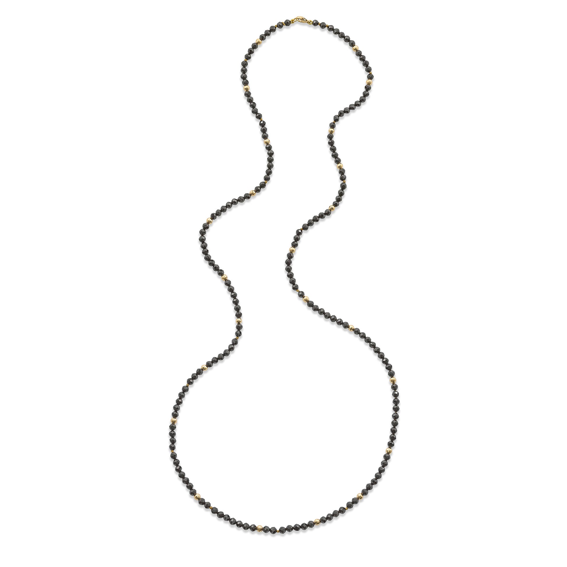 Striking contrast, elevated. The Utopia Noir necklace features smooth black beads accented with 18ct yellow gold Disco beads and a bold gold clasp. Available in a range of lengths, each one is designed to be worn alone or layered together for maximum impact. A modern classic with edge - made to layer, designed to last.